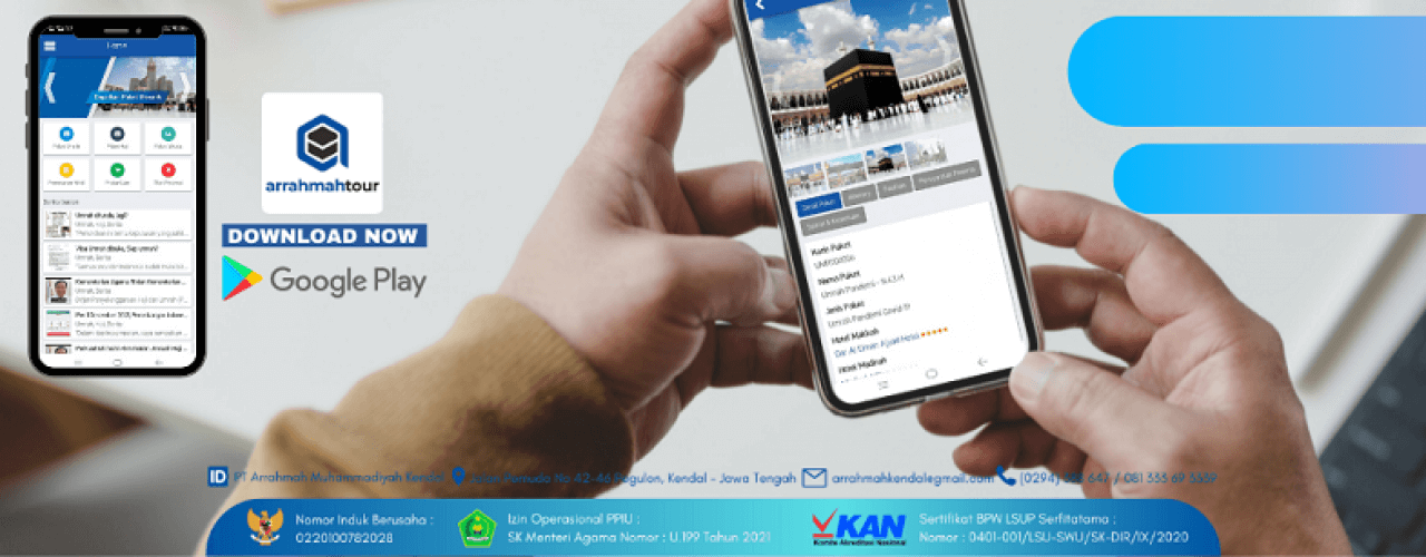 Arrahmah Tour merupakan badan usaha milik Muhammadiyah yang telah berpengalaman dalam memberangkatkan jama'ah ibadah umrah. Kami sangat menjaga kepuasan dan kepercayaan jema'ah dalam melaksanakan ibadah umrah.