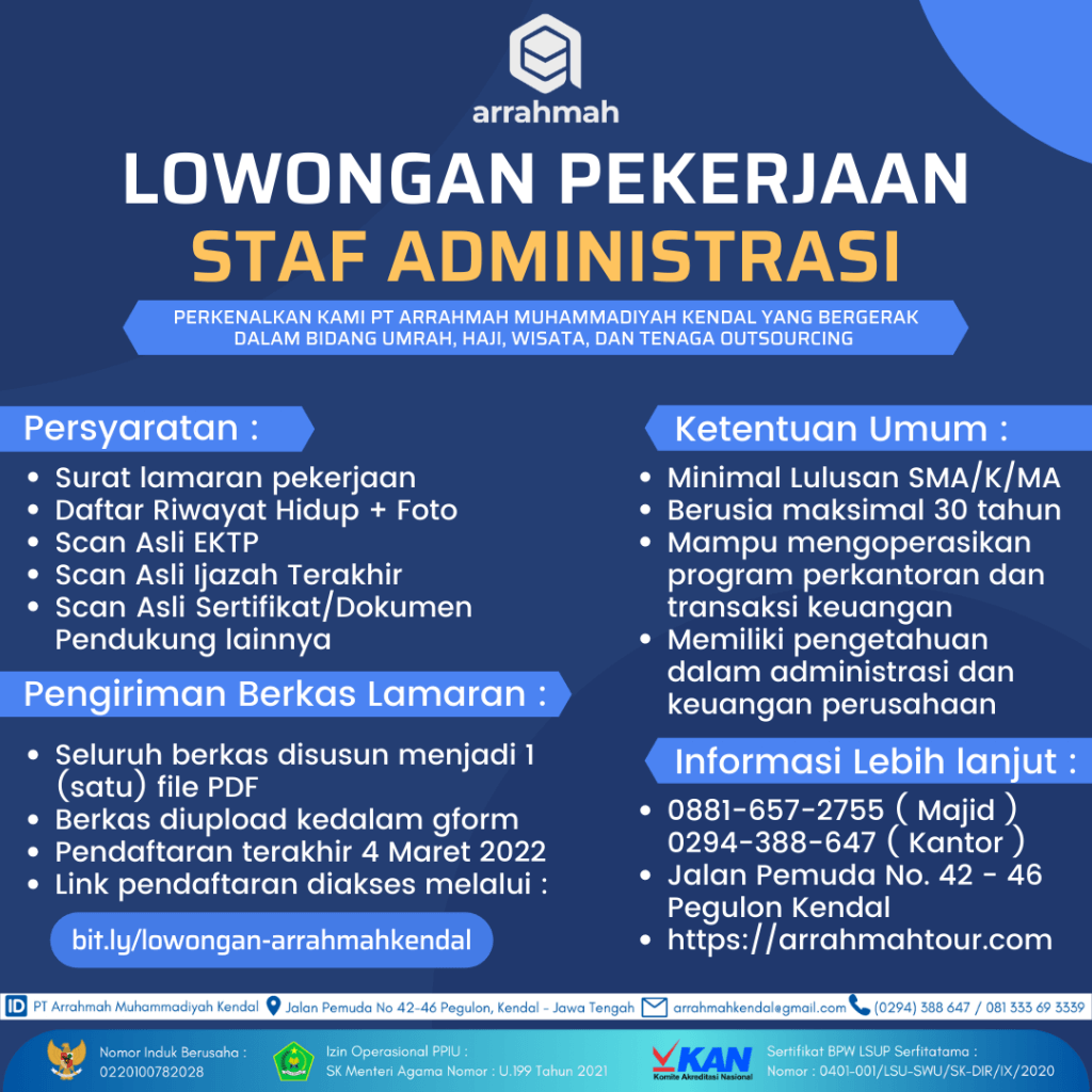 Lowongan Pekerjaan - Staf Administrasi - Arrahmah Kendal